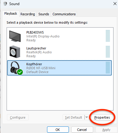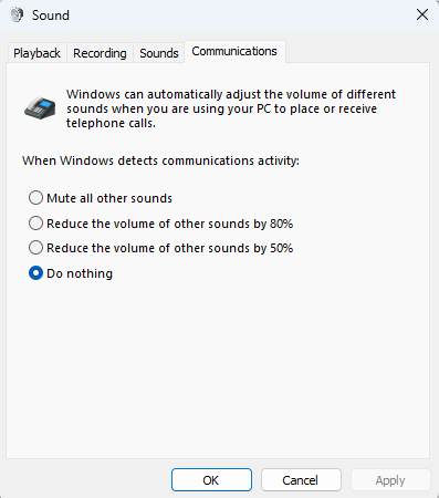 However, these often have a negative impact on the behavior when used in music lessons with doozzoo. These Windows internal settings lead to ducking effects and may prevent the playback of internal sounds like metronomes and audio players in doozzoo.
